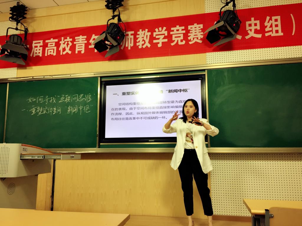 2018年,田老師初登湖北省第六屆青年教師教學競賽賽場,一舉拿下文史組第一名。2020年,她又征戰第五屆全國青年教師教學競賽,斬獲文科組二等獎。“我在備賽的過程一直處于高負荷的運作狀態。因為自己資歷比較淺,身上又擔負著學校的期待,所以想盡全力把事情做好。”每一次比賽都全力以赴,每一段經歷都刻骨銘心。4個月的備賽時間里,田老師化壓力為動力,不斷調整教學思路,改進教學方式。在學校工會、文傳學院的專家學者幫助下,她逐步完善課程設計,深化教學內容,優化教學環節,熬過了無數個不眠之夜,修改了無數次課件教案。在賽場上,她沉著冷靜、清晰大方地闡述自己的所思所想,最終以精細縝密的授課思路、生動專業的授課內容、得體從容的賽場表現打動各位評委,收獲一眾好評。