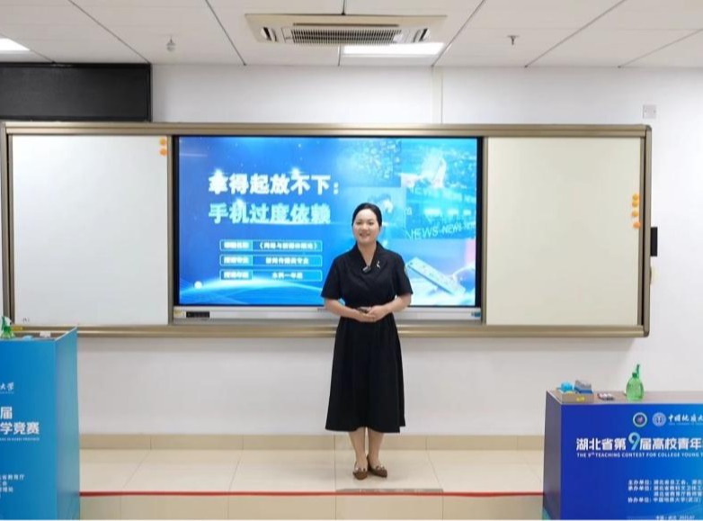比賽當天,她抽到的課堂節段是“手機過度依賴”。她將備戰的成果淋漓盡致地展現出來,以“媒介依賴理論”為核心,引導學生辯證思考:“在媒介依賴理論中,適度的媒介依賴是合理的,一旦過度,就要反思:是不是被工具異化了?工具本應服務我們,現在是否反而綁架了我們?”這種從理論認知到現實反思,再到能力提升的遞進式教學路徑,贏得了評委的高度認可。