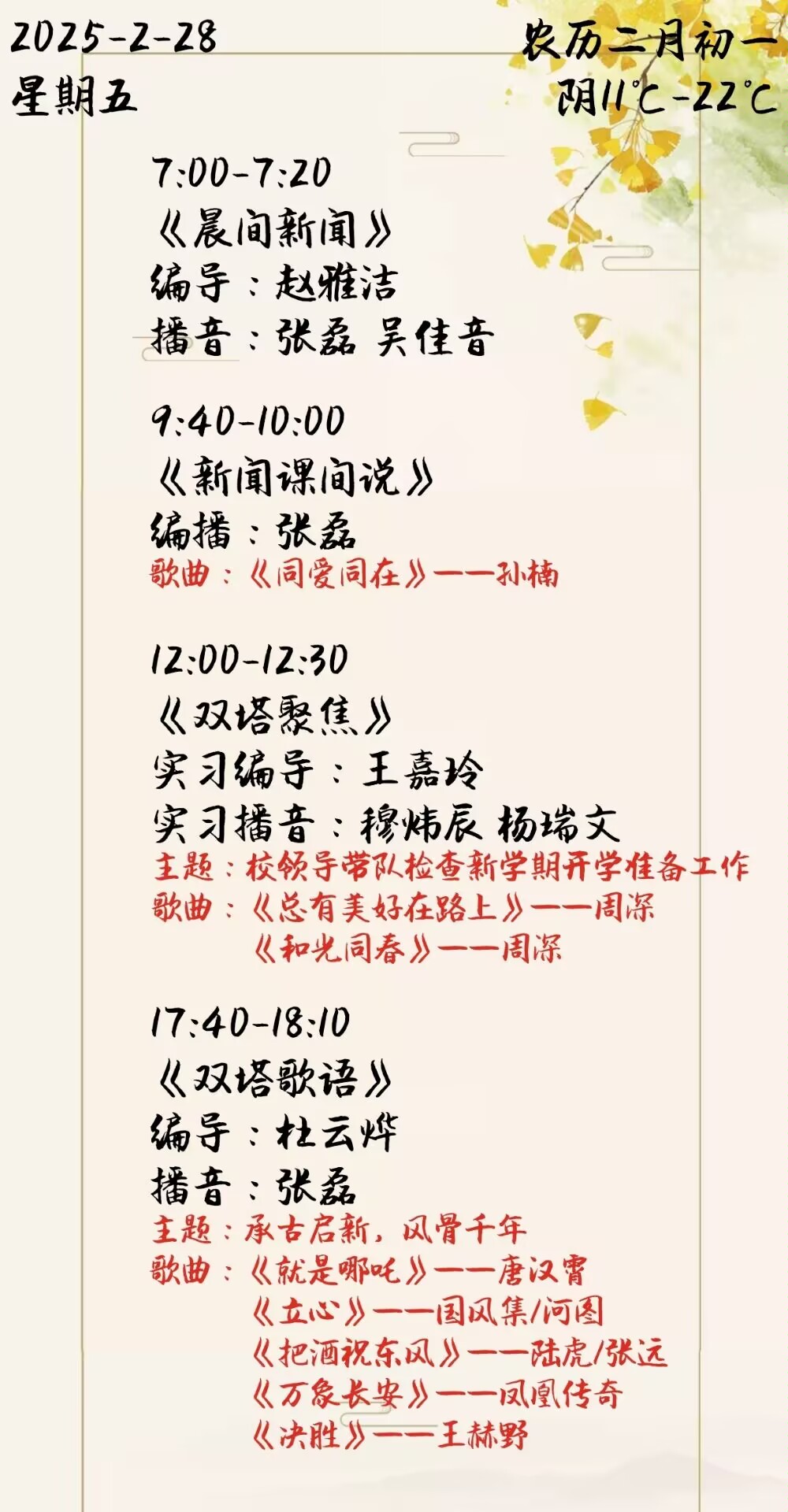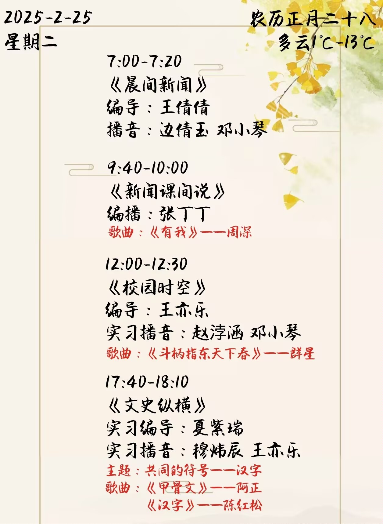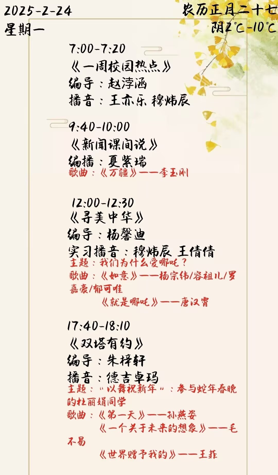 上一篇: 雙塔之聲2025年第一學(xué)期第2周節(jié)目單(2025.3.3-3.7)