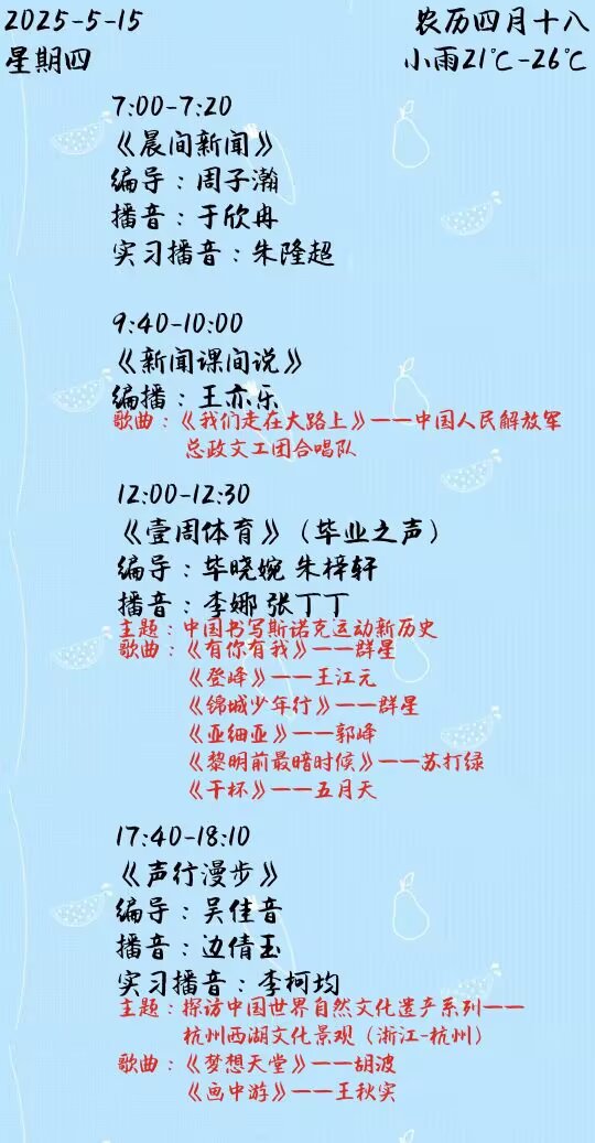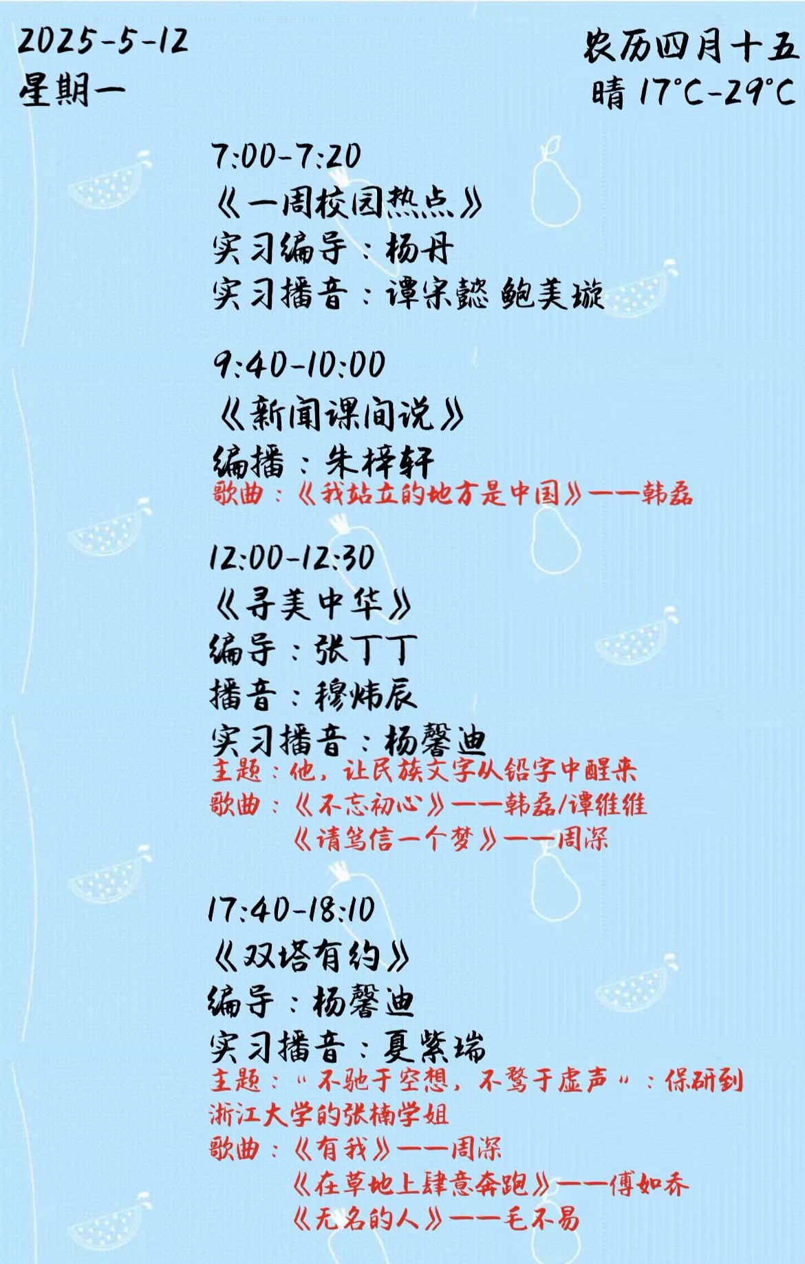 下一篇: 雙塔之聲2025年第一學期第11周節目單(2025.5.6-5.9)