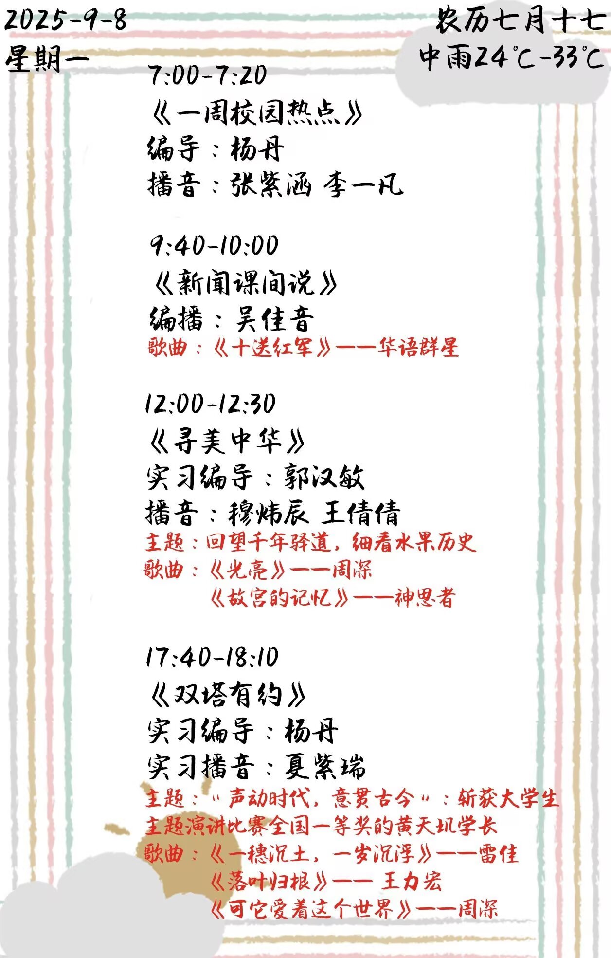 上一篇: 雙塔之聲2025年第二學期第2周節目單(2025.9.15-9.19)