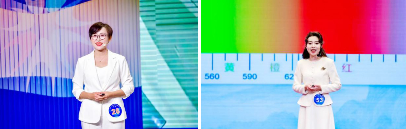 比賽中,劉曉霞以我國基礎(chǔ)建設(shè)、航空航天、國防軍事等多個領(lǐng)域為背景,深入淺出地科普了風(fēng)洞技術(shù)這一國之重器,生動介紹了風(fēng)洞技術(shù)的運(yùn)作原理及其在飛行器研發(fā)和體育訓(xùn)練中的應(yīng)用。艾麗菲拉·爾肯江以李白詩中的“日照香爐生紫煙”為切入點,引導(dǎo)觀眾一同探索光學(xué)世界,科普了瑞利散射這一光學(xué)現(xiàn)象,并講解了其在大氣污染檢測、交通信號燈等領(lǐng)域的應(yīng)用。2位老師的講解自然流暢,科學(xué)知識突出,收獲了現(xiàn)場觀眾的陣陣掌聲,得到了評委們的一致肯定!