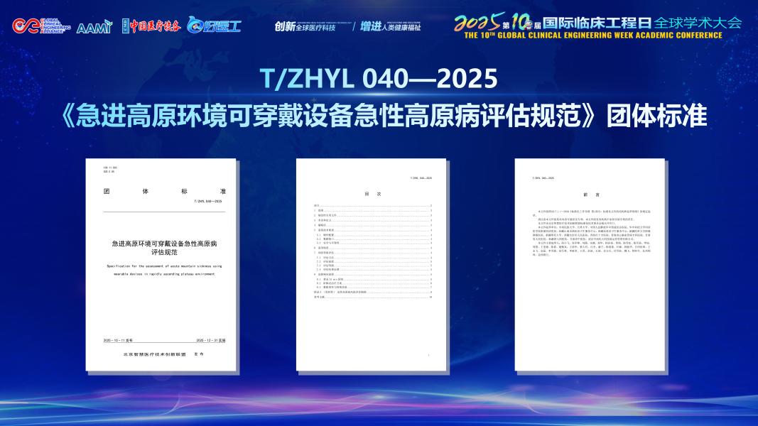 10月18日,第六屆國際臨床工程與醫療技術管理大會暨第十屆國際臨床工程日全球學術大會在深圳開幕。在為期3天的會議中,與會專家對我校生物醫學工程學院牽頭制定的T/ZHYL 040—2025《急進高原環境可穿戴設備急性高原病評估規范》團體標準給予高度評價,并提出了建設性意見。