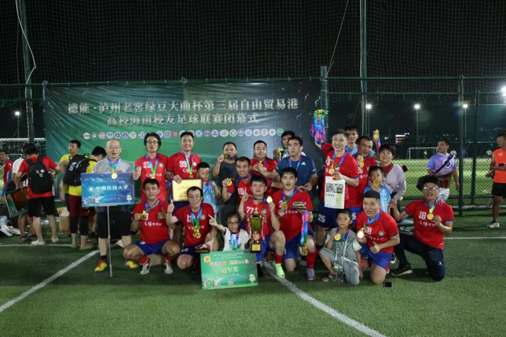 2023年8月26日,德能瀘州老窖-綠豆大曲杯第三屆自由貿易港高校海南校友足球聯賽勝利閉幕,前六輪中南民族大學海南校友足球隊4勝2平積14分,位列第二。最后一輪直接對戰積分16分排名第一的邵陽學院海南校友足球隊,這場比賽只有取勝才能獲得冠軍。