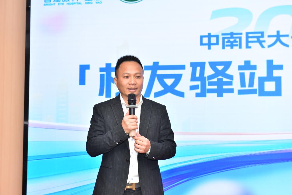 參觀結(jié)束后,校友們回到院區(qū)一樓大廳,共同拍攝了活動(dòng)的首張合照。隨后,中南民族大學(xué)云南校友會(huì) “校友驛站” 授牌儀式在會(huì)客廳隆重舉行。云南校友會(huì)副會(huì)長、2002 級計(jì)科學(xué)院校友許志碧將 “校友驛站”牌匾授予楊發(fā)達(dá)院長,標(biāo)志著 “校友驛站” 正式落戶普瑞眼科星耀院區(qū)。普瑞眼科星耀院區(qū)還為校友們提供了一系列專屬福利。授牌儀式后,楊發(fā)達(dá)院長表達(dá)了對校友們到訪的誠摯感謝,并送上美好祝福。