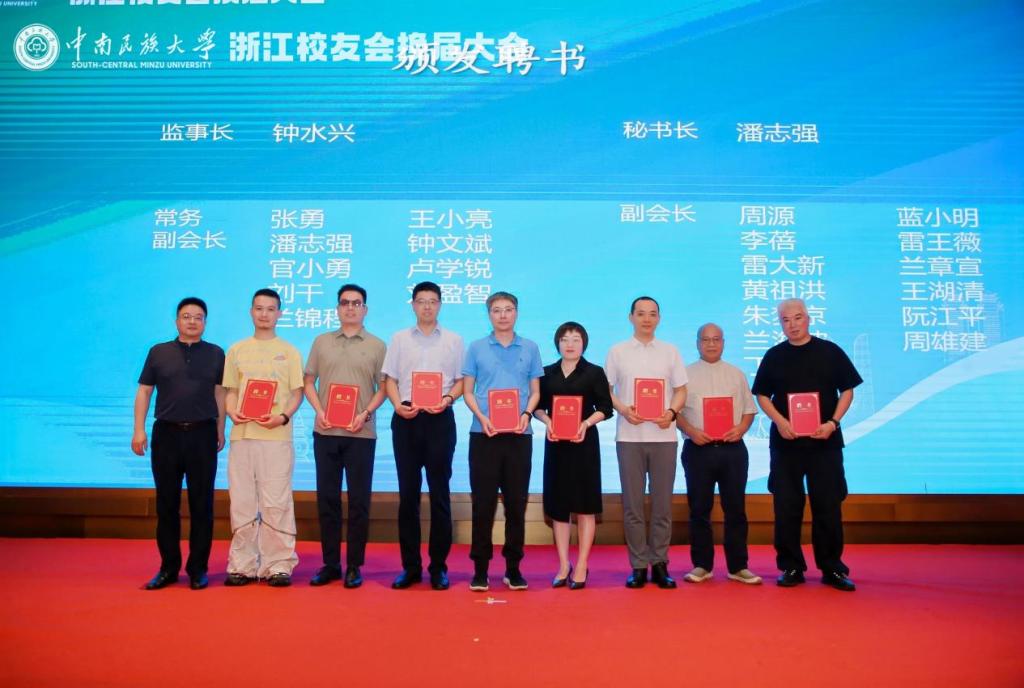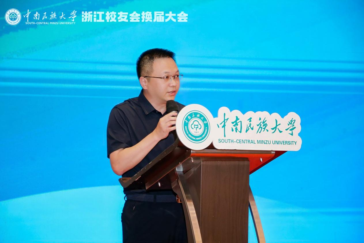 覃瑞介紹了學校近年來在學科建設、人才培養、科研創新、隊伍建設等方面取得的重要進展,他強調校友是學校最寶貴的財富和最堅定的支持力量。學校正處于轉型升級改革、沖刺新一輪“雙一流”、謀劃“十五五”高質量發展的關鍵時期,他希望浙江校友會新一屆理事會繼續發揮橋梁紐帶作用,一是緊密團結服務校友,建設共有精神家園;二是發揮示范引領作用,推動區域深度合作;三是攜手母校共同前行,擘畫事業發展藍圖。希望各位校友與母校一起鑄牢校友與母校的情感共同體、發展共同體、命運共同體。