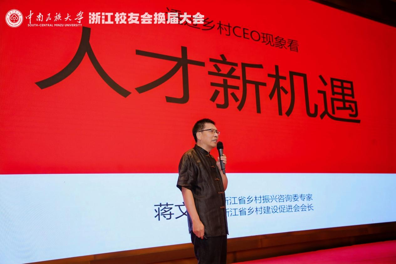 大會還邀請了嘉賓和校友代表為與會校友做了主題分享。浙江盛鄉村建設促進會會長、中國農村合作經濟管理學會鄉村建設專委會秘書長蔣文龍以“透過鄉村CEO現象看人才新機遇”為題分享了浙江鄉村CEO的成功案例。1987級企業管理專業校友蘭國云以“衢州”經驗暢談校企合作發展的新路徑。