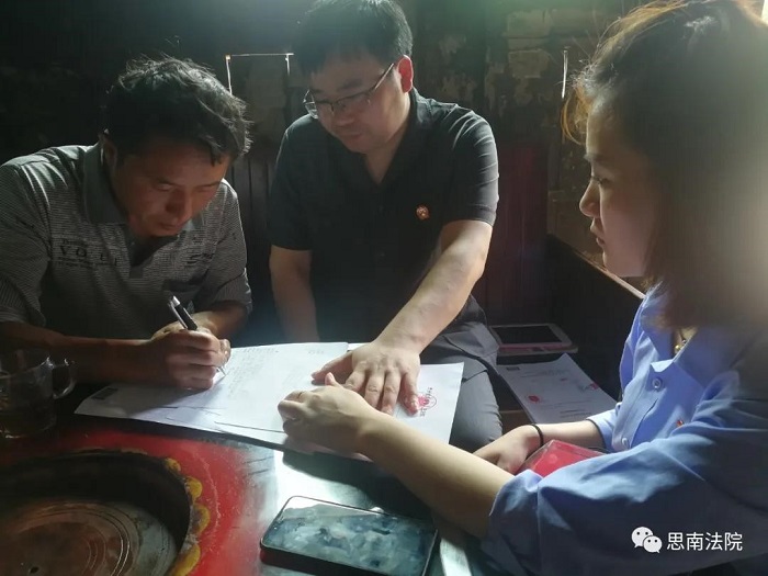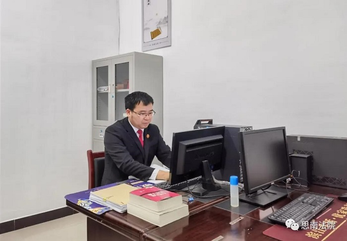 扎根基層,青春無悔 郭禮龍同志進入法院工作,就被派往距縣城40公里外的第五人民法庭(現大壩場人民法庭),先后任書記員、助理審判員、副庭長、庭長,七年后調任距縣城30多公里外的第一人民法庭繼續擔任庭長職務,至今已近十個年頭。其間,他服從組織安排,默默奉獻青春,兢兢業業且無怨無悔。法庭工作事多繁雜,白天要忙于處理庭里事務,接待當事人、開庭、調解、協助執行等,制作裁判文書大多在晚上完成。特別是近年來,還要在轄區黨委統一領導下奔赴脫貧攻堅一線,或協助當地人民調解組織處理矛盾糾紛。在他的工作和生活里,基本不存在節假日和雙休日概念。2016年以前,郭禮龍與妻子在思南縣的兩個不同鄉鎮工作,只得把年幼的小孩交給父母在老家照顧,與妻子聚少離多,一年也難得去看望小孩幾次。2016年郭禮龍調往妻子所在的鄉鎮的法庭工作后,就把母親和小孩接到法庭,以法庭為家,讓家庭遷就工作,但繁忙的工作讓他也沒有多少時間陪小孩,小孩對他不親近,家里的大部分事務都壓在妻子肩上,妻子有時候也會抱怨,他深感愧疚,但一想到當事人都在殷勤期盼著案件的處理結果,他又毫不懈怠地投入到工作中,以努力工作來彌補對家庭的虧欠。