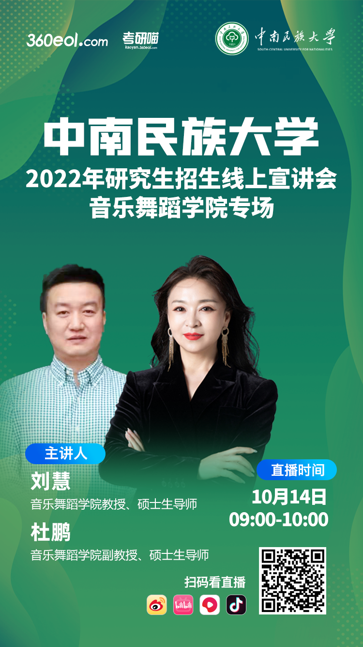 中南民族大學2022年研究生招生線上系列宣講會之八 ----音樂舞蹈學院專場