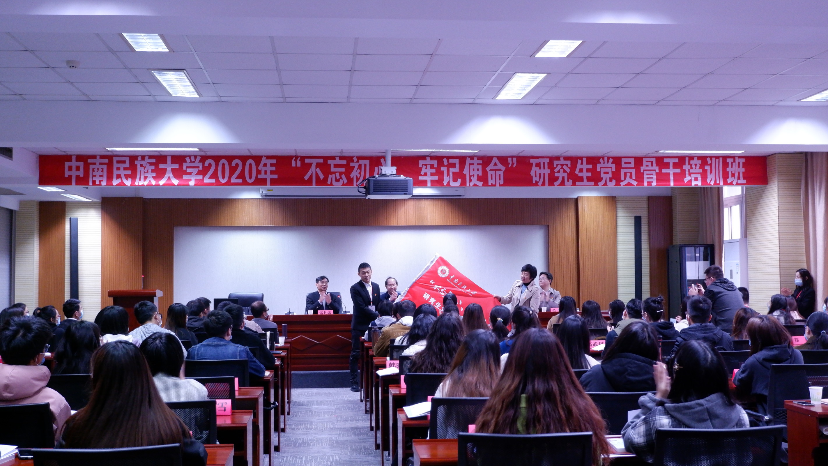 開班儀式上,蔡瓊為本次研究生黨員骨干培訓班授旗。黨委研究生工作部副部長、研究生院副院長范軍介紹了本次培訓班舉辦的背景、學員構(gòu)成以及主要內(nèi)容。文傳學院劉玥含同學作為學員代表發(fā)言。