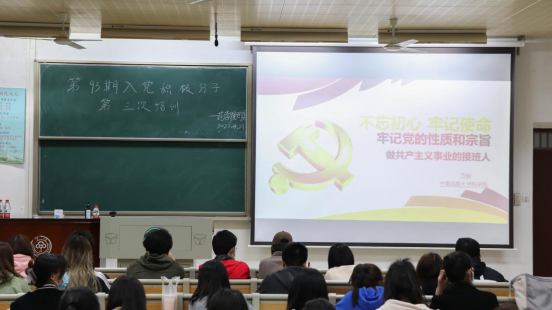 本次培訓課以“不忘初心,牢記使命,牢記黨的性質和宗旨”為題,對黨的性質、黨的宗旨和黨的指導思想進行多方面講解。院黨委副書記方明指出,我們要長久堅持科學正確、使命崇高、實踐有力的共產主義信仰,做到思想上入黨。本次課程生動詮釋了黨全心全意為人民服務的根本宗旨,鼓勵入黨積極分子要樹立遠大的共產主義思想,樹立正確人生觀、價值觀和世界觀;努力學好大學專業課知識,把所學知識奉獻給社會。