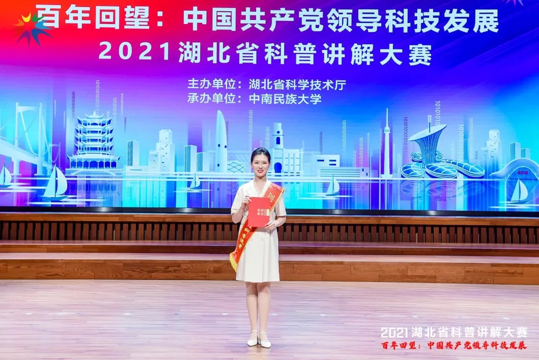 7月10日,由湖北省科學技術廳主辦、我校承辦的2021年湖北省科普講解大賽決賽在光谷音樂廳舉行,大賽以“百年回望:中國共產黨領導科技發展”為主題。藥學院2019級藥學專業本科生李佳皓參加決賽,獲得省二等獎和“2021湖北省十佳科普使者”稱號。