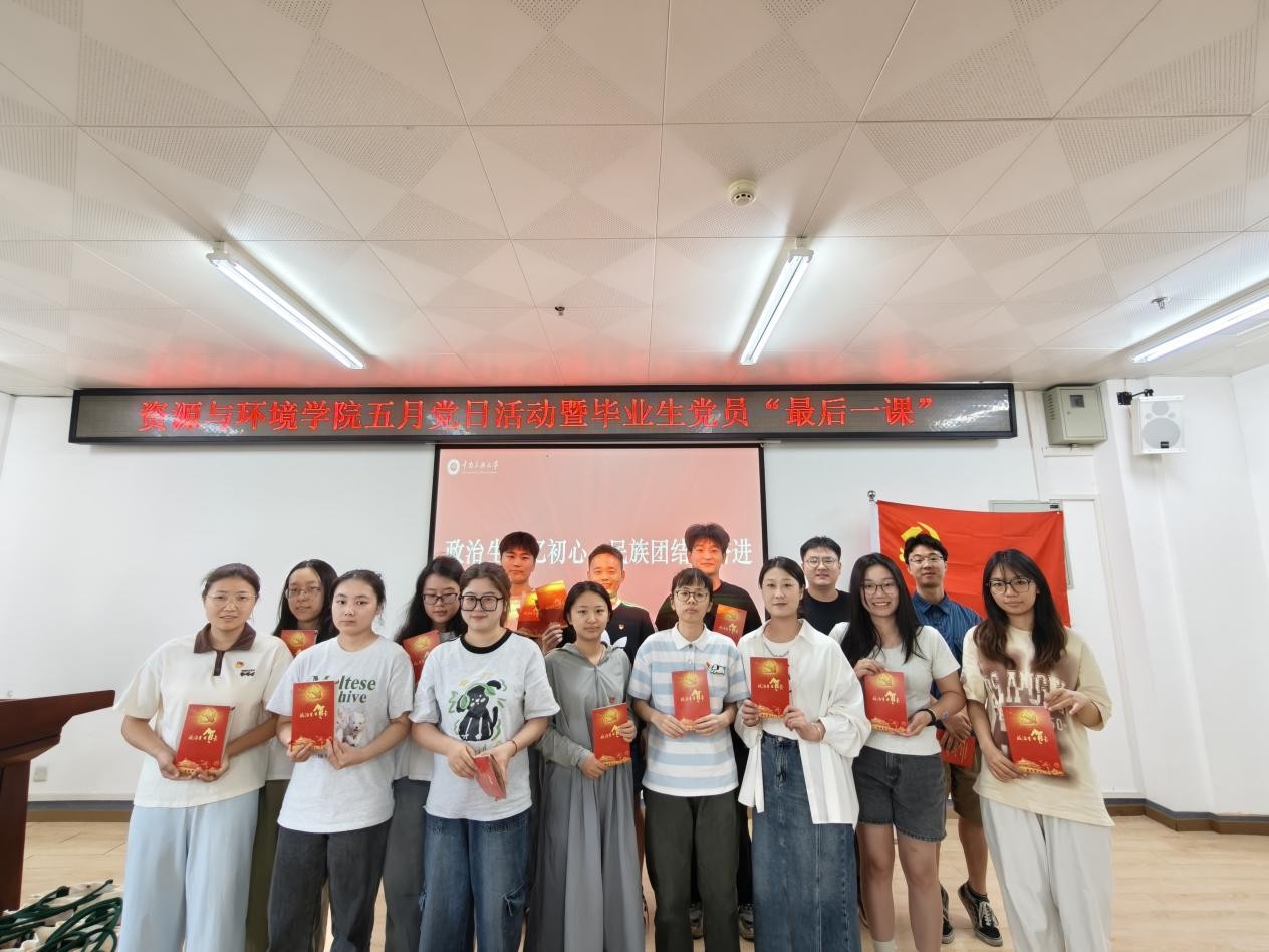 2025年5月30日,資源與環境學院于13棟261報告廳舉辦五月黨日活動暨碩士畢業生“最后一節畢業課”,活動以“青春向黨·同心筑夢——鑄牢中華民族共同體意識的時代擔當”為主題。學院研究生輔導員劉瑾老師和全體研究生參會,會議由研究生黨支部副書記趙怡主持。
