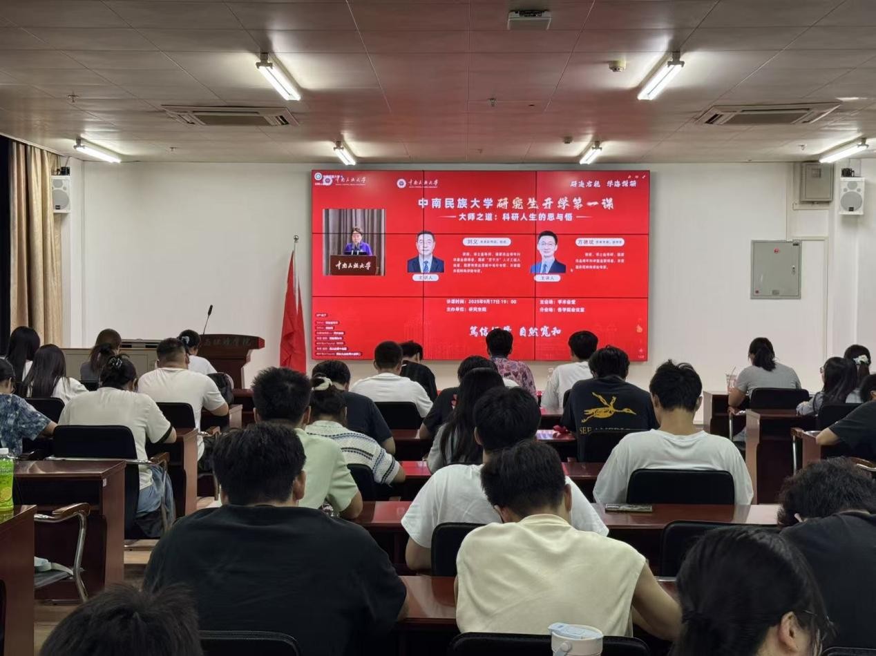 2025年9月17日19:00,中南民族大學(xué)資源與環(huán)境學(xué)院組織全體研究生在13棟261報(bào)告廳以“線上+線下”結(jié)合的形式,統(tǒng)一觀看2025年中南民族大學(xué)研究生開學(xué)第一課——“大師之道:科研人生的思與悟”。全體研究生全程參與了此次專題課程的學(xué)習(xí)。