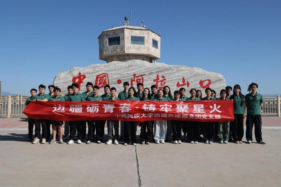 中南民族大學邊疆共建服務團在阿拉山口國門合影