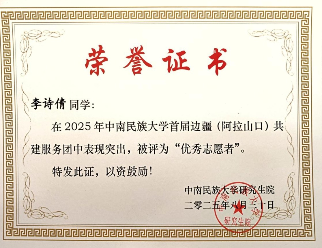 獲評“優(yōu)秀志愿者”榮譽稱號