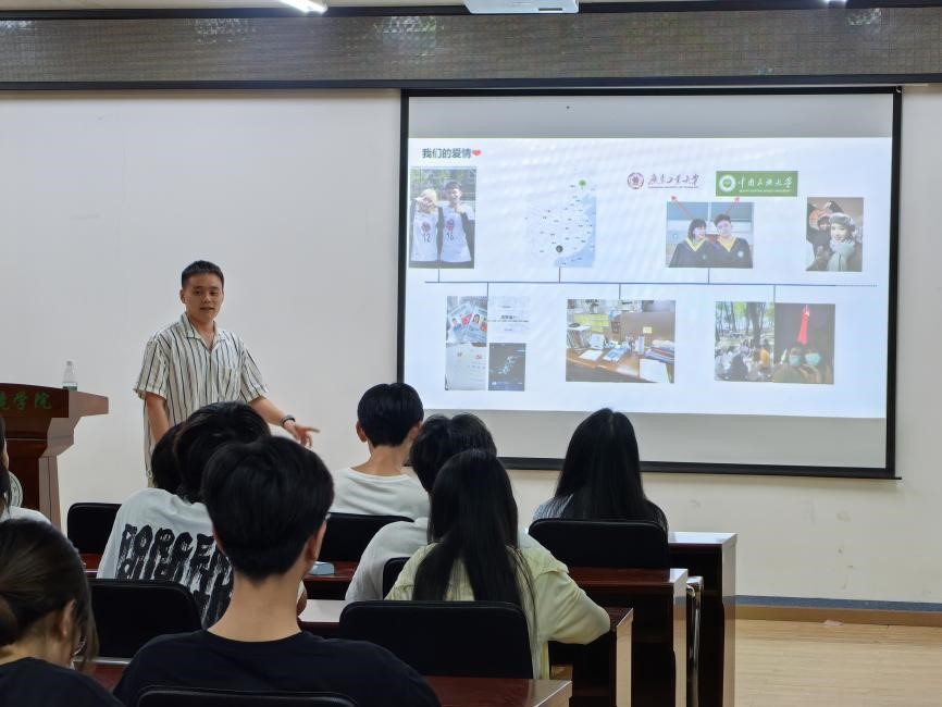 只講大道理怎能讓同學(xué)們牢記于心?杜亞光老師邀請(qǐng)自己的研究生許洋銘同學(xué)現(xiàn)身說法,講述他的戀愛故事。