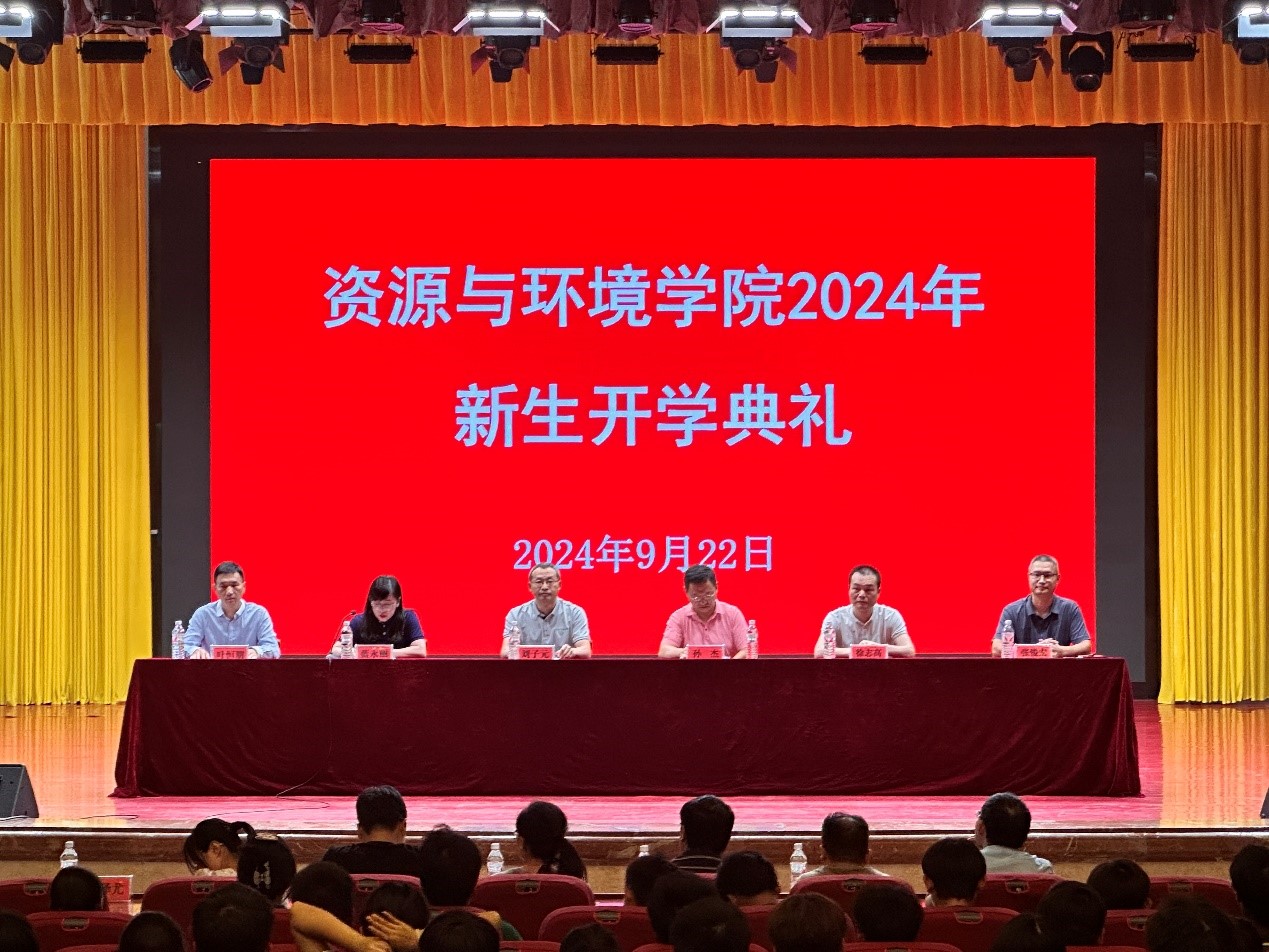 9月22日下午,資源與環境學院于學術會堂舉行了2024年新生開學典禮。學院黨委書記劉子元,黨委副書記、院長孫杰,黨委副書記藍永麗,副院長徐志高、葉恒朋、張俊宏出席,各教研室主任、班導師、輔導員、新生班助和2024級本科新生參加了典禮。典禮由藍永麗主持。