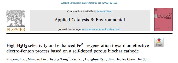 研究快報:具有高H2O2選擇性和增強Fe2+再生效率的電芬頓生物碳陰極