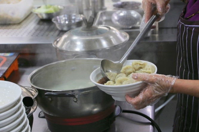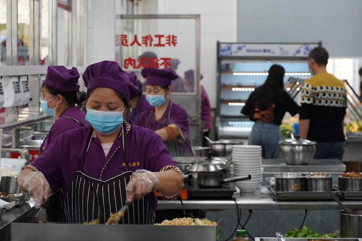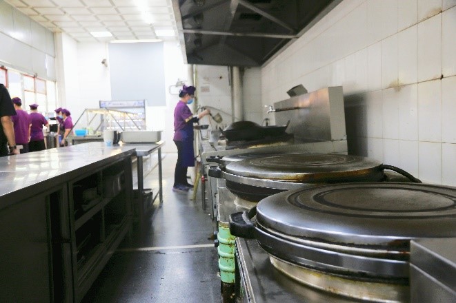 映照著后廚師傅們往來的身影